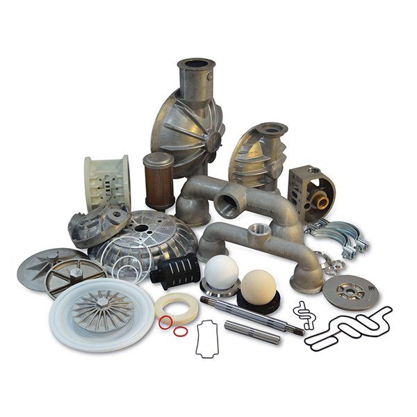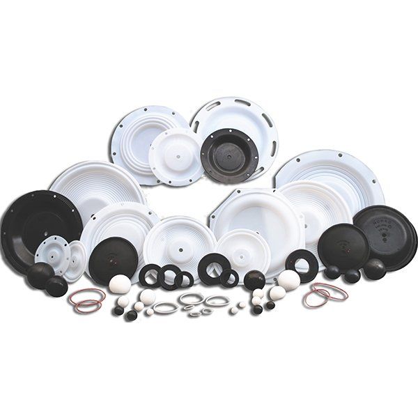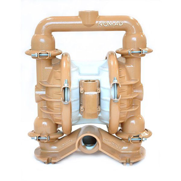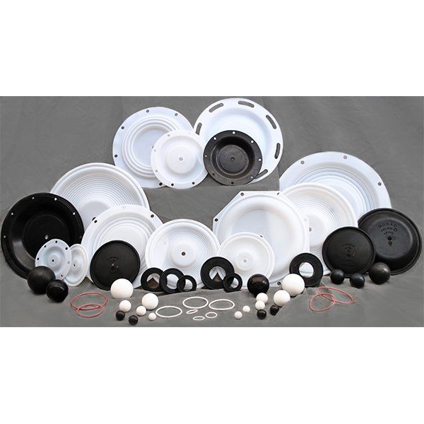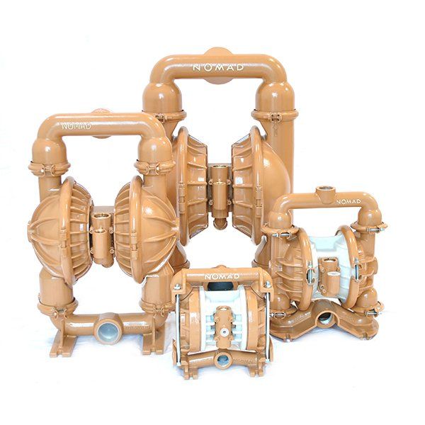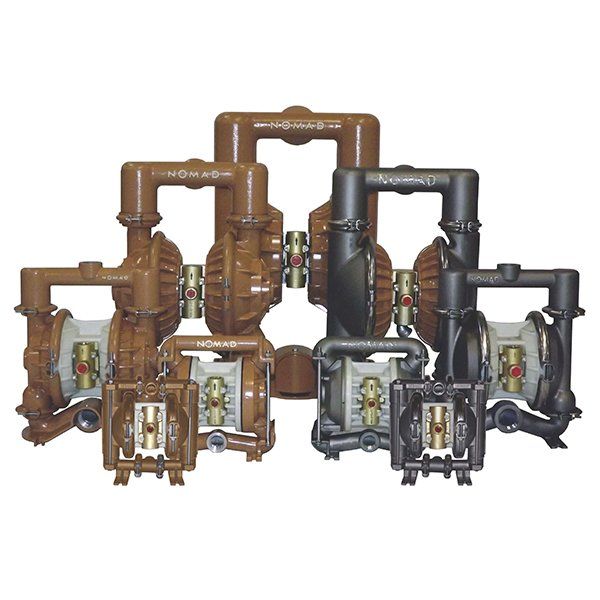 Bombas de diafragma disponibles con puertos de conexión desde 1/4″ hasta 4″ con las siguientes opciones de materiales combinables entre el cuerpo y sus partes internas: cuerpo en aluminio, polipropilineo, acero inxodable, fierro, kynar; partes internas en neopreno, buna, viton, santopreno, saniflex, teflón, nordel.